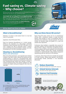 Furthermore, Dinex facilitates a responsible return process for used filters, offering a cash-back deposit after quality inspection. Returned filters undergo a three-step reconditioning process, ensuring compliance with emission regulations and environmental sustainability. Notably, reusing filters through reconditioning contributes to a significantly lower carbon footprint compared to manufacturing new ones, with up to a 97% reduction.
